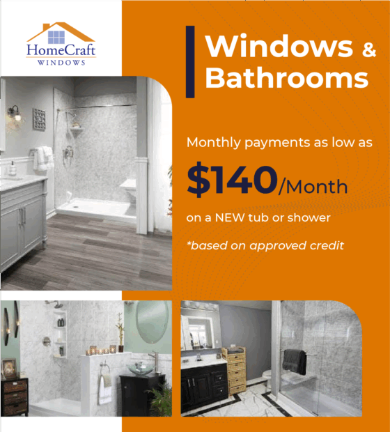 Monthly payments as low as $140/Month on a NEW tub or shower *